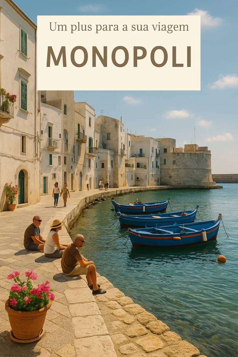 Se você procura um destino autêntico, fotogênico e com o verdadeiro sabor do sul da Itália, Monopoli é uma escolha certeira. Com seu centro histórico à beira-mar, casinhas brancas e o som dos barcos voltando da pesca, a cidade é um convite ao relaxamento e à descoberta.